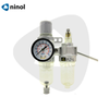 Đây là thiết bị lọc có chỉnh áp kết hợp với bình phun dầu. Bao gồm GFR 200 (thiết bị lọc có điều áp và đồng hồ) và GL 2000 (bình dầu) Đây là lọc không có vỏ bao bên ngoài (không có kèm theo cốc sắt). Bộ lọc này có thể tách riêng biệt từng thiết bị, lọc có hiệu quả cao khi tách được chất bẩn, nước có trong khí nén. Thiết kế sản phẩm nhỏ gọn, nhẹ và tiện cho việc lắp đặt, sử dụng, thay thế. Ứng Dụng Nguyên Liệu: Khí.